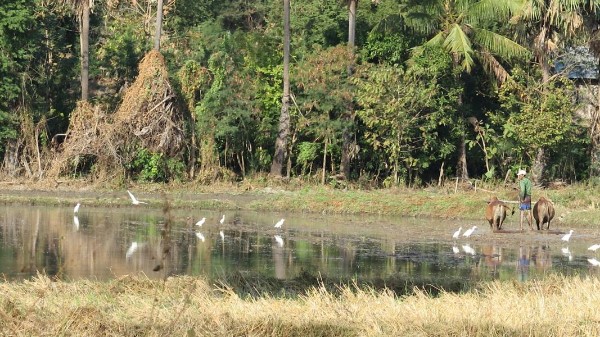 Heute steht die erste richtige Radtour an, von Bagan über Mount Popa nach Kyaukpadaung. Nach dem mageren Frühstück, Kaffee, 2 Scheiben Toast, Marmelade und ein Spiegelei, pedalen wir um halb acht zum Ort hinaus.