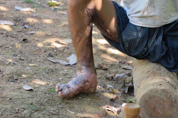 Aus der Hütte kommt ein Mann zu uns und bietet uns Wasser und selbstgerollte Zigarren an. Wir unsererseits bieten ihm Salzcracker belegt mit Scheibenkäse an. Erst jetzt sehen wir seine schlimmen Brandwunden an beiden Füßen und Beinen. Er kann uns mit seien wenigen Worten die er in Englisch beherrscht nur erklären das es durch Feuer passiert ist.