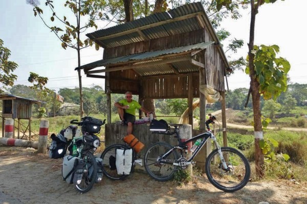 Der Brite James Marson mit seiner Frau kommen uns kurze Zeit später auf einem Tandem entgegen. Für sie waren wir die ersten Radreisenden auf ihrer Myanmar Tour. Nach 3 Std. machen wir Pause mit Tee, Brot, Käse und Marmelade. Diese Rast kommt genau richtig, denn anschließend vergießen wir die ersten Schweißtropfen, weil die Straße erbarmungslos ansteigt bis wir Popa erreichen.