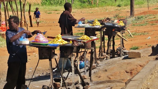 Mein Tagesziel, die Stadt Choma (100 Km) erreiche ich schon um 12Uhr 30 es beginnt zu regnen aber ich mache nur eine kurze Pause trink mir ein Mosi Bier und esse zwei frittierte Teigballen ( wie Muzen nur ohne Rosinen ) und nehme die nächste Ortschaft Kalomo ( 64Km ) als Ziel ins Visier.