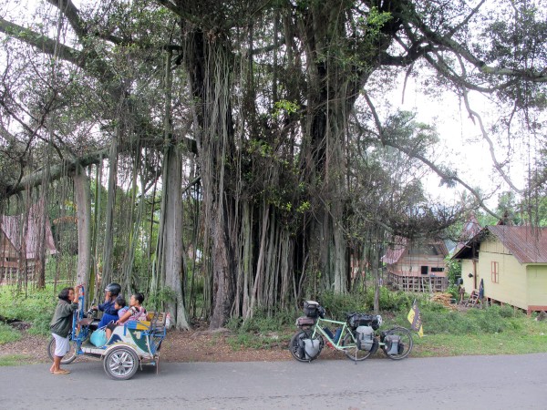Heute Morgen werde ich seit langer Zeit mal wieder vom Muezzin, der um halb fünf zum Morgengebet ruft, geweckt. Es hört sich aber viel melodischer an hier in Indonesien als zum Beispiel der harte fast befehlsartige Ton in Pakistan. Wenn dann noch aus den Nachbargemeinden die Gebetsrufer mit in den Gesang einstimmen hört sich das richtig gut an. So bin ich auch schon um 6:40 AM auf der Strasse. Genau wie Gestern windet sich die Strasse durch dichten Regenwald den Berg hoch.