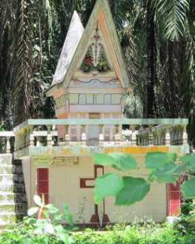 Der letzte Radtag in Malaysia wird wieder sonnig werden,denn als um acht Uhr meine Radsandalen mit einem “ Klick” in die Pedale einrasten sind nur noch ein paar Wolken am Himmel. Ich lenke mein Dreirad die Küstenstrasse entlang. Hier ist alles vertreten, von der Nobelherberge mit eigenem Golfplatz bis zur Bettenburg ala Spanien, aber auch hübsche kleine Hotels. Bei Tageskilometer 31 nehme ich die Nebenstrasse Nr.143 wo weniger Verkehr ist. Die Sonne steht senkrecht über mir, was man an meinem Schatten erkennen kann. Der Tacho zeigt 42 Grad an, das heißt der Schweiß läuft in Strömen und das muss auch so sein sonst würde der Körper überhitzen.