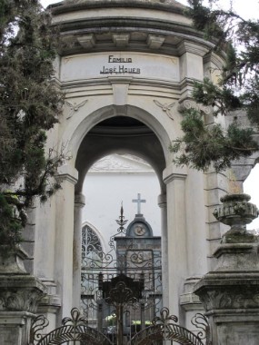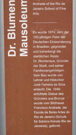 Die Statue des H. Blumenau vor dem Mausoleum wo die sterblichen Überreste der Familie Blumenau beigesetzt sind.