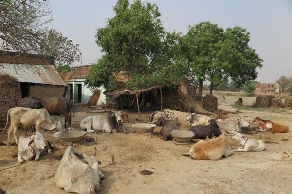 Nach dem ich mein Gepäck von der vierten Etage runter geschleppt habe und mein Velo bepackt ist bin ich schon triefnass geschwitzt. Um Sechs Uhr rolle ich durch die engen Gassen Richtung Hauptstraße. Einige Männer liegen auf dem Boden und schlafen noch. Auch die Kühe sind schon unterwegs und machen einen Zug durch die Gemeinde. Eine Frau verneigt sich vor der Kuh und hängt ihr einen Blumenkranz in die Hörner, reißt aber am anderen Ende der Kuh ein paar Schwanzhaare aus. In der Stadt ist es voll von Pilgern die alle zu den Ghats gehen. Die brennenden Müllhaufen mit ihrem Qualm und Gestank lassen keine Abschiedsstimmung aufkommen eher das Gegenteil. So bin ich froh, dass ich nach 15 Km aus der Stadt heraus bin und mich an der Farbenpacht einer Allee erfreuen kann.