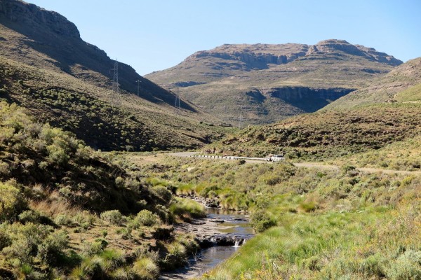 Dort im Ort Marakabei treffe ich die lesothische Version von Pipi Langstrumpf. Nach dem ich den Fluss Senqunyane über quert habe, steigt die Straße mächtig an.