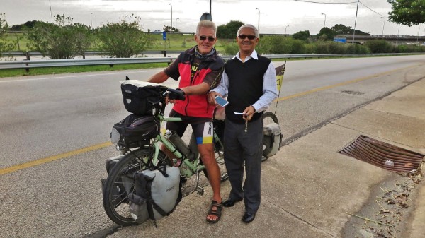 Das ist der erste Tag in Afrika, an dem ich mit kompletter Regenmontur starte. Theo begleitet mich die ersten 20 Km bis zur Silversand Bay. Wir verabschieden uns und verabreden Kontakt zu halten. „Danke ihr Beiden für eure großzügige und herzliche Gastfreundschaft.“