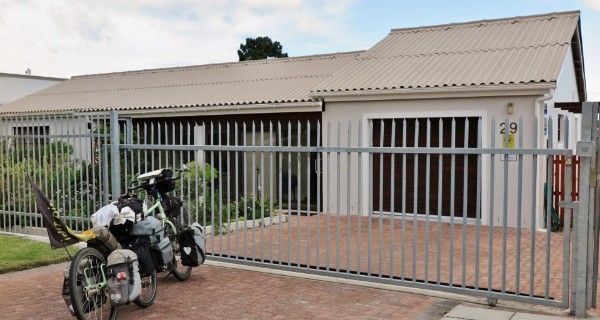 Ca. 20 km vor dem Ziel mache ich an einem windgeschützten Platz Pause. Dort kommen Theo und Frau Augusta mit dem Wagen vorbei. Da sie auch Tourenfahrer sind stoppen sie und wir kommen ins Gespräch. Bevor sie Fahren laden sie mich zu sich nach Hause in das 10 Km entfernte Kleinmond ein. Ich könnte bei Ihnen übernachten und wir können uns über die Touren die sie und ich schon gemacht haben unterhalten. Da stimme ich doch gerne zu.