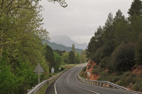 Eine schöne Landschaft da fehlt nur noch der blaue Himmel. Schwere Regenwolken hängen über der Sierra Alkaraz und es hat gerade mal 10 Grad Plus.
