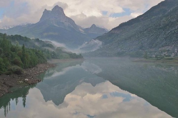 Der Himmel hat heute Morgen sein schönstes Grau angelegt und dekoriert mit dunklen Regenwolken. Genau 20 Km gibt mir Petrus um mich einzufahren, dann öffnet er die Schleusen. Gerade komme ich an einem Stausee vorbei der fast randvoll ist. Erst gegen zwölf Uhr Mittag als ich nach 3Stunden 15 Minuten eine Pause einlege hat es aufgehört zu regnen.