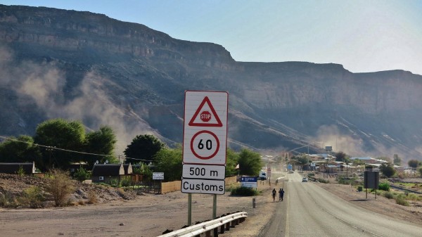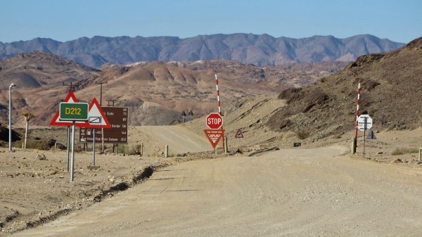 Der Wind wird immer stärker, auch wenn ich jetzt auf dem flachen Huib-Hoch-Plateau (1000m) radele, zeigt der Tacho nur 7Km/h an. Nach der zweiten Pause, die Erste nach drei, die Zweite nach 6 Fahrstunden, ist mir klar dass ich noch eine Nacht in der Wüste verbringen werde. Der Verkehr ist so dünn, alle halbe Stunde ein Fahrzeug, so das nicht auf einen Lift hoffen brauche. Ich halte schon Ausschau nach einem windgeschützten Platz fürs Zelt, da überholt mich ein LKW Pritschenwagen. Ich winke und rufe ihm hinterher und tatsächlich der Fahrer fährt links ran. Ruckzuck liegen Gepäck und Fahrrad auf der offenen Ladefläche vom Laster und ich sitze neben Job dem Fahrer im Führerhaus. Die 70Km bis Aus schafft er in einer Stunde und ich bin heil froh bei dem starken Wind nicht in der Wüste übernachten zu müssen. Von Job will ich ein Foto machen, doch als er hört das ich dieses dann ins Netz stelle, sagt er lieber nicht sonst bekommt er noch ärger mit seinem Chef.