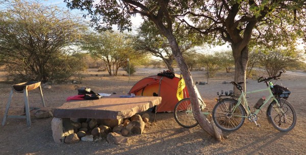 Ich fahre nicht wie ursprünglich geplant die C13, die ich auch noch teilweise mit Gabi pedalen werde, sondern die B4. Die Strecke ist zwar weiter aber dafür eine Taar Road und es warten noch zwei Sehenswürdigkeiten bei Keetsmanshoop auf mich. Goageb steht jetzt immer auf der Schildern und wird als nächster Ort angegeben, doch das Garmin findet dort aber nichts, weder ein Camp noch eine Lodge, so suche ich mir einen Zeltplatz ca. 16 km vorher, am Wegesrand.