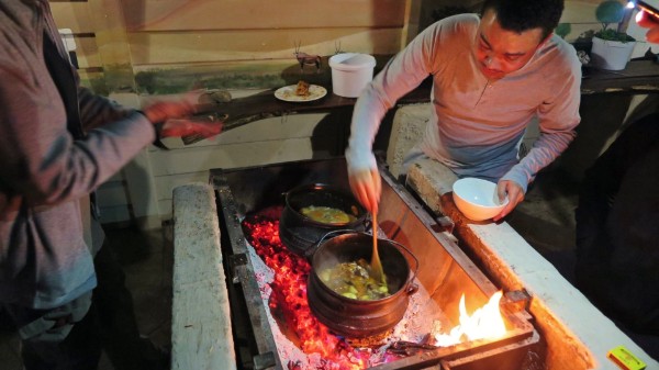 Am Abend wird ein traditionelles namibisches Gericht, Potje & Pap am offenen Feuer in zwei Gusseisernen Topfen gekocht.