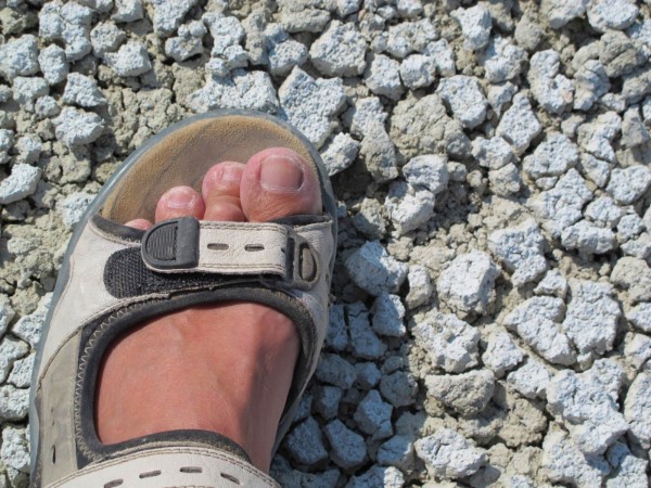 Als wir um 12 Uhr Pause machen ist es schon gut warm und wir ziehen unsere Socken aus.