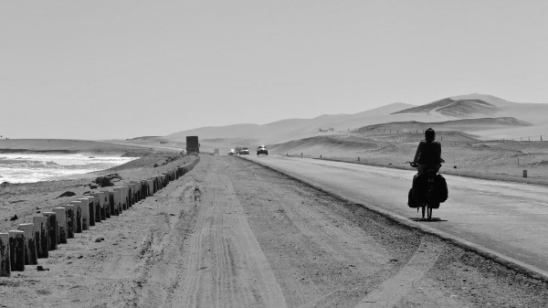 Es sind die krassen Gegensätze die mich heute so begeistern. Rechts der Blick auf die Sanddünen der Wüste, links der Blick auf das Meer. Auch heute sehen wir wieder viele Flamingos.
