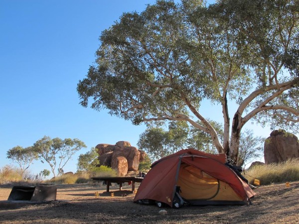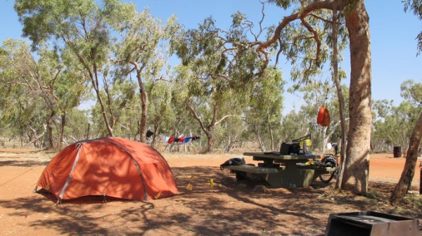 Auf dem Curtin Spring Camp Ground kann man kostenlos Übernachten. Nur Duschen kostet 3$ , das finde ich prima. Nach dem Abendessen, was ich mir koche, schlafe ich tief und fest.