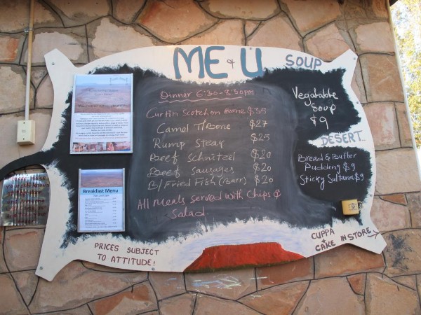 Doch nach 54Km kommt die Kings Creek Station wo ich zweites Frühstück mache und meine Wasservorräte auf fülle. Das Wasser nehme ich aus der Leitung auch wenn dran steht das es unbehandelt ist und man es nicht trinken soll. Die Besitzerin der Station versichert mir aber das es OK. ist. Wen man sieht das die 1.5 Liter Wasserfasche im Shop 6.50$ kostet dann kann man sich denken warum das Schild dort hängt. Zwanzig Kilometer weiter fülle ich Spühlöl in das Rohloff Getriebe denn nach 5000 Km , gefahren in Australien, ist ein Ölwechsel fällig, den ich Morgen machen werde.