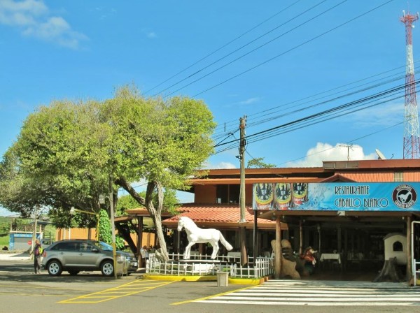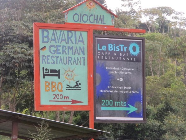 Auf dem Weg um den See sticht mir besonders die Reklametafel der deutschen Bäckerei ins Auge die sich in Nuevo Arenal befindet. Mit jeder neuen Tafel wo mit Bratwurst, Sauerkraut und Hefeweizen geworben wird, entwickelt sich so langsam die Bäckerei zum Tagesziel.