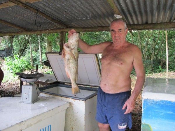 Auf dem Rückweg vom Strand treffe ich Gerhard der den Fisch für das heutige Abendessen direkt beim Fischer aussucht und fachgemäß entschuppen und ausnehmen lässt.