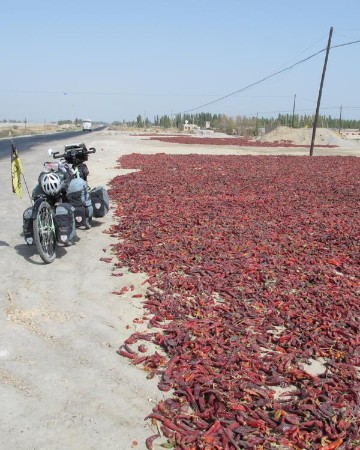 Anschließend fahre ich durch ein Gebiet wo der geerntete Paprika zum trocknen ausgelegt wird.
