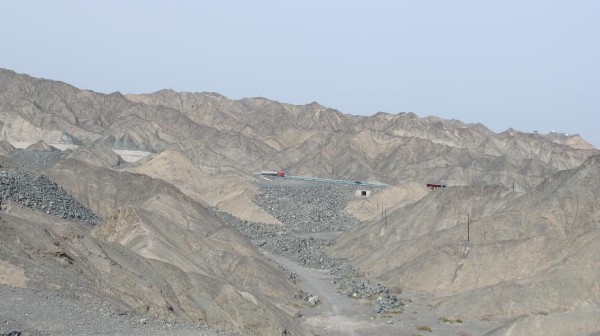 Nach Tageskilometer 75 wieder Wüste. Die Strasse läuft auf die Bergkette zu deren höchster Gipfel 5645m hoch ist. Die Konturen und Schneefelder sind so gerade durch die Schleierbewölkung zu erkennen. Es geht auch langsam aber stetig nach oben. Gegen 18:00 Uhr, ich halte schon Ausschau nach einem Zeltplatz, tauchen am Horizont die Konturen einer Stadt auf. Es dauert noch 10 km bis ich den kleinen Ort, der nicht in meiner Karte steht, erreiche. Er liegt auf 1744 Meter und hat ein Fernfahrer Hotel .