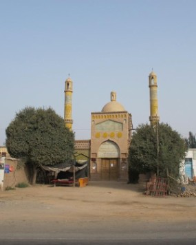 In der Ferne sieht man einen schneebedeckten Bergriesen. ( lt. Karte 4388 m hoch ) Nach 57 km steigt die Strasse noch mal an und bei minus 25m bin ich in TURPAN. Die Stadt lebt zum größten Teil vom Tourismus und vom Weinanbau.