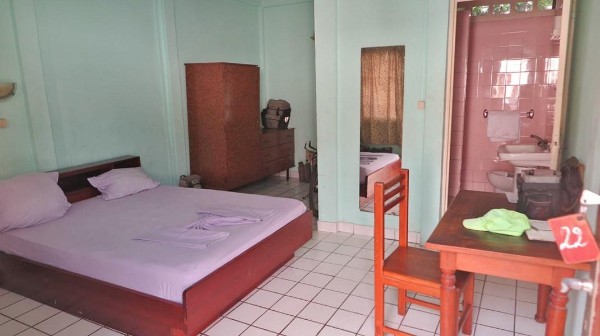 Rad zusammenbauen bepacken und los. Gerade mal ein Kilometer weiter finde ich ein Hotel. Ein Zimmer für die Nacht bekomme ich für 20 US$, ohne eigenes Bad, was aber direkt neben an ist.