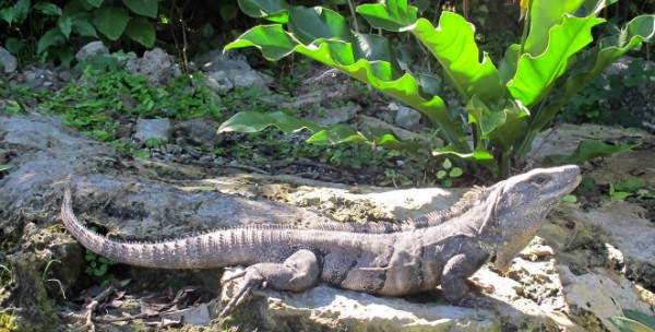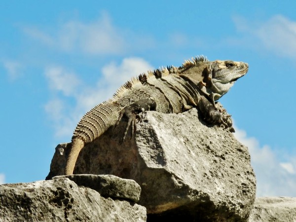 Jede der von mir besichtigten Ruinen hatte etwas Besonderes. Hier in Tulum ist es die außergewöhnliche schöne Lage direkt an der Karibischen See gelegen und ihre kleinen Drachen die hier überall anzutreffen sind.