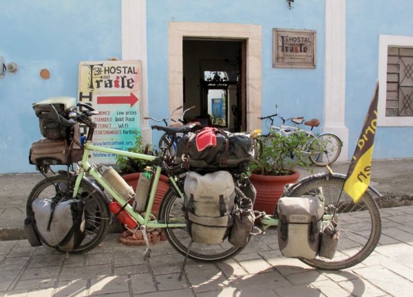 Nach genau 100 Km, 6 Stunden kurbeln und 75 Höhenmeter stehe ich mitten in Tulum vor dem Hotel Maya, was sich nach Preisvergleich als Günstigstes rausstellt 250,-Peso pro Nacht. Einen Haken hat die Sache ich muss mein Gepäck bis in die zweite Etage schleppen. Da ich ja mindestens drei Tage bleibe ist das nicht so tragisch.